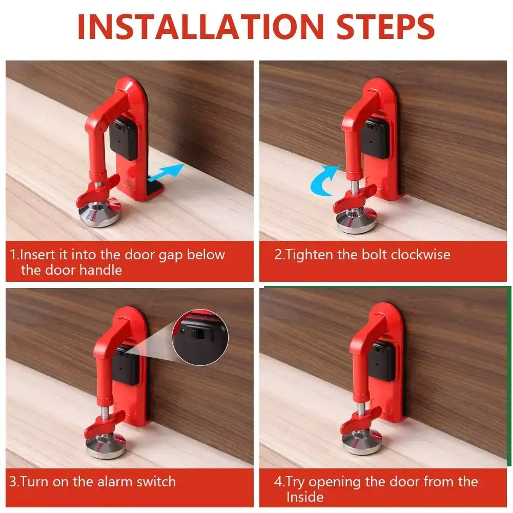 ?Safety Guardian? Com este alarme de porta retrátil, você não precisa se preocupar com a intrusão de convidados indesejados, quer você esteja hospedado em um hotel, viajando, morando sozinho em casa ou em uma viagem de negócios.Ao morar sozinho, você não precisa ter medo de qualquer movimento anormal do lado de fora da porta.É como um guarda-costas privado que você enganou, permitindo que você durma tranquilamente até o amanhecer.